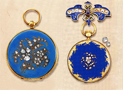 Un altro della regina Vittoria, Patek Philippe non è nei suoi vestiti, un diamante e spilla smalto abilmente costituite. Questa tabella da oro, le mani l'elegante Breguet puntatore, succinta modellazione. Nel mese di aprile 1845, Jean-Philippe Andrien a Parigi si applicano comma spilla- orologi per brevetti.